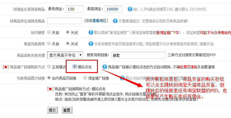 选择模拟点击的话,购买按钮可以点击,但跳转后的链接无PID,也就是说结算不了佣金。